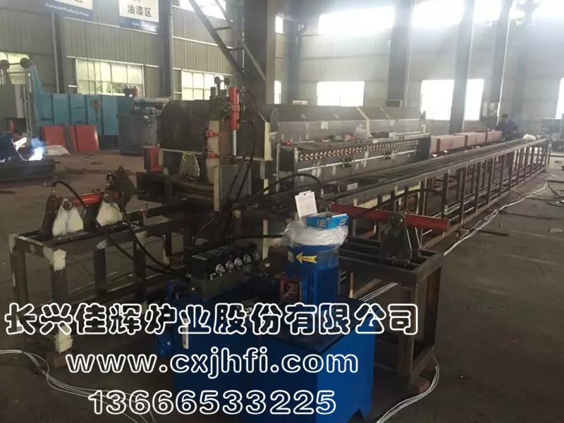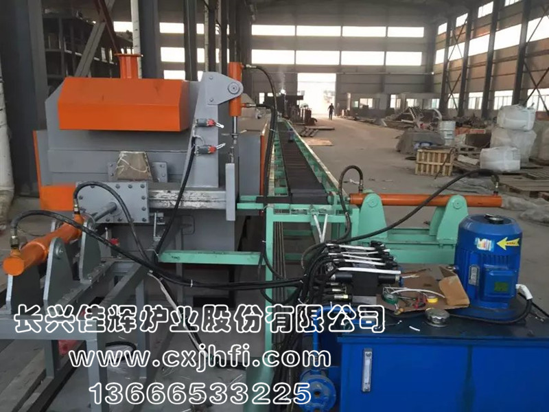 推舟式燒結(jié)爐 此設(shè)備可根據(jù)用戶要求進(jìn)行定制、定做,服務(wù)熱線:13666533225 推舟式燒結(jié)爐系連續(xù)式生產(chǎn)型工業(yè)爐,利用石墨板承載不銹鋼料盒,配合推桿一盒接著一盒地推至加熱區(qū)內(nèi)部,在氣氛保護(hù)狀態(tài)下進(jìn)行粉末還原、粉末冶金制品的燒結(jié)等熱處理。 用戶可選擇性采購(gòu)料盒回旋裝置,整體成連貫式生產(chǎn)。 該生產(chǎn)線具有控制先進(jìn)、方便、節(jié)能顯著、維修方便等特點(diǎn),全線加熱區(qū)均采用PID多區(qū)控溫。保護(hù)氣氛可以選擇采用氮?dú)饣驓涞旌蠚怏w保護(hù)。