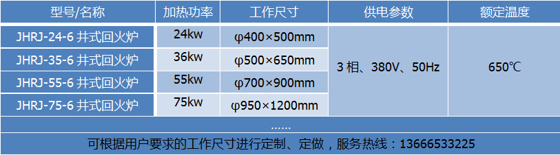 井式回火電阻爐 此設備可根據用戶要求進行定制、定做,服務熱線:13666533225 井式回火電爐是周期作業式電爐,供一般金屬機件在空氣中進行回火以及鋁合金壓鑄件、活塞、鋁板等輕合金機件淬火、退火、時效熱處理之用。 結構簡介:JHRJ系列井式回火電阻爐結構為國家標準井式爐。外殼由鋼板和型鋼制成圓柱形爐體。爐蓋內面采用不銹鋼板制成。爐襯采用超輕質耐火保溫磚砌筑。爐襯與爐殼夾層置硅酸鋁纖維氈保溫,其余間隙填充膨脹至石粉。電阻絲采用0Cr25Al5高電阻合金絲繞成螺旋狀安裝在爐膛的擱絲磚上。爐膛內放置有不銹鋼裝料筐及護欄。爐蓋采用手動扛桿或電動液壓升降。爐蓋上安裝有耐熱不銹鋼軸和風葉制成的熱風循環風機,使工件在加熱過程中,爐內空氣上下循環以保證工件加熱均勻。